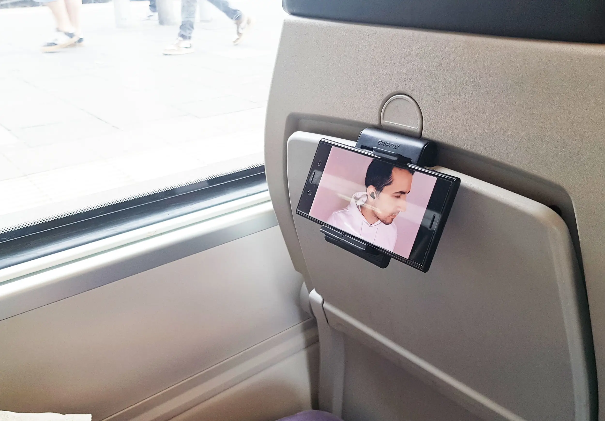 Turn your seat into a personal cinema with Gripfox - the ultra-flexible phone holder for travel and beyond.